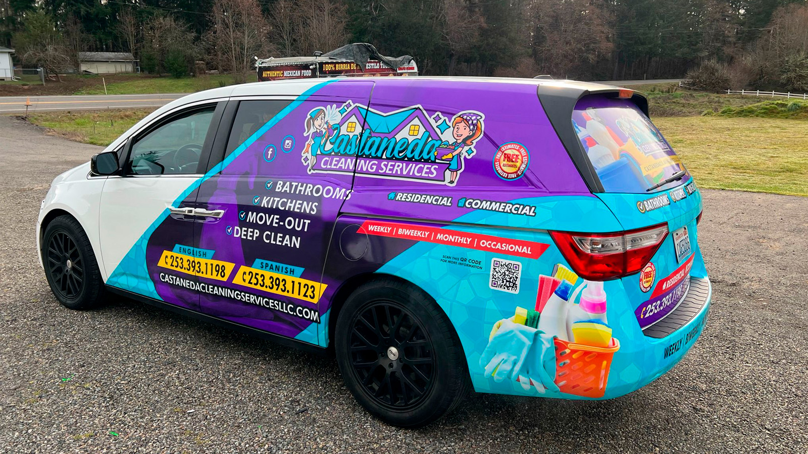 Protect your vehicle, preserve the value of your fleet while promoting your business with a full vehicle wrap. Faster and more cost effective than a paint job, you can easily remove or change the wrap with your next campaign.